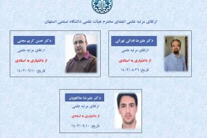 3- آقاي دكتر عليرضا علافچيان - عضو محترم هيأت علمي پژوهشكده نانوفناوري و مواد پيشرفته - ارتقاي مرتبه علمي به استادي