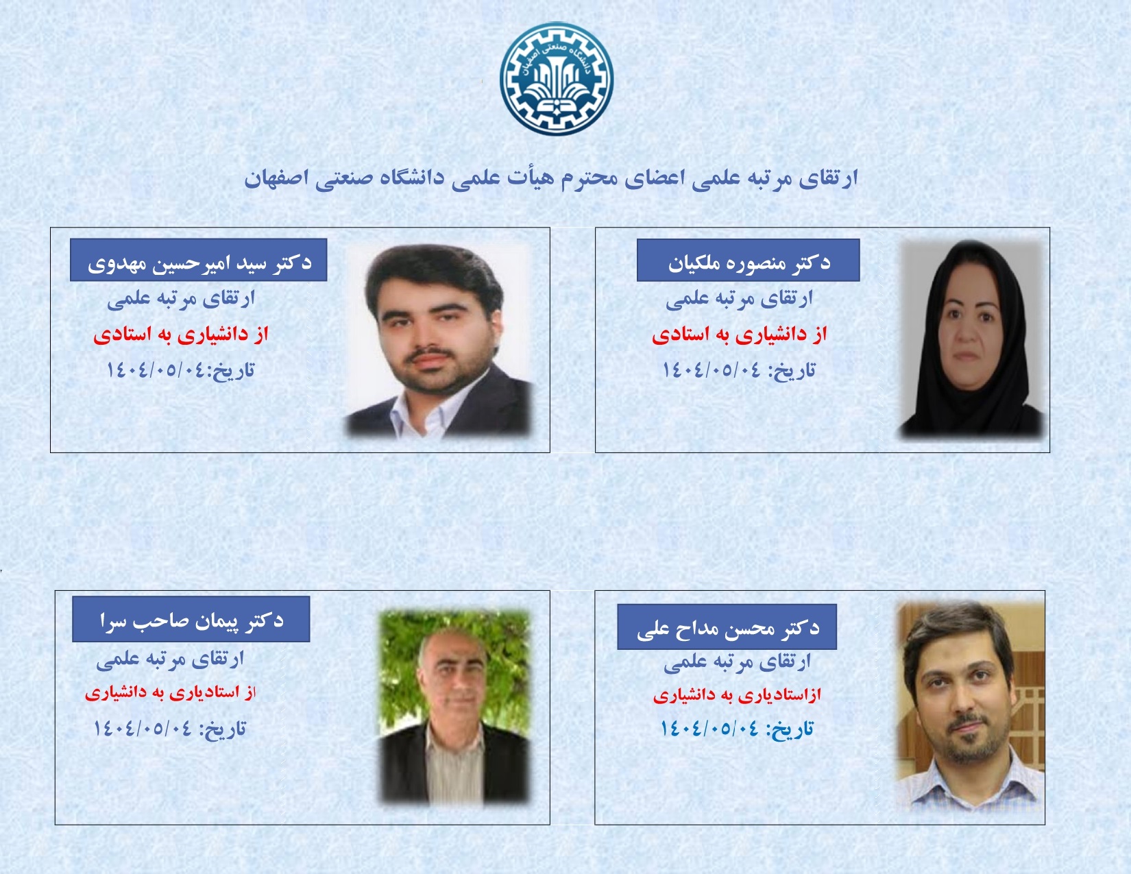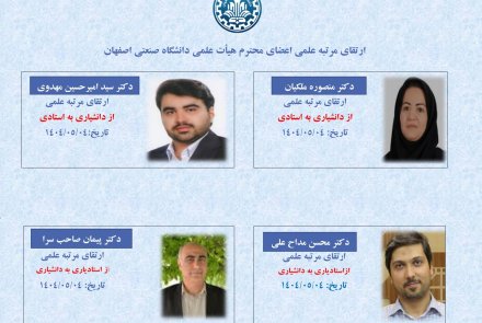 3- آقاي دكتر محسن مداح علي - عضو محترم هيأت علمي دانشكده مهندسي برق و كامپيوتر - ارتقاء علمي از استادياري به دانشياري