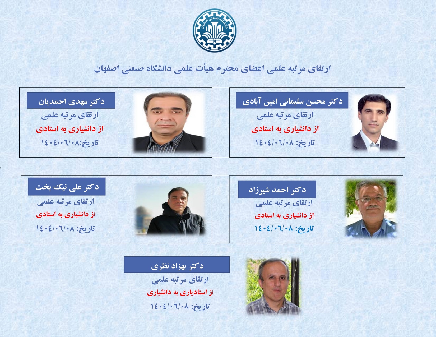 4- آقاي دكتر احمد شيرزاد - عضو محترم هيأت علمي دانشكده فيزيك - ارتقاي علمي از دانشياري به استادي